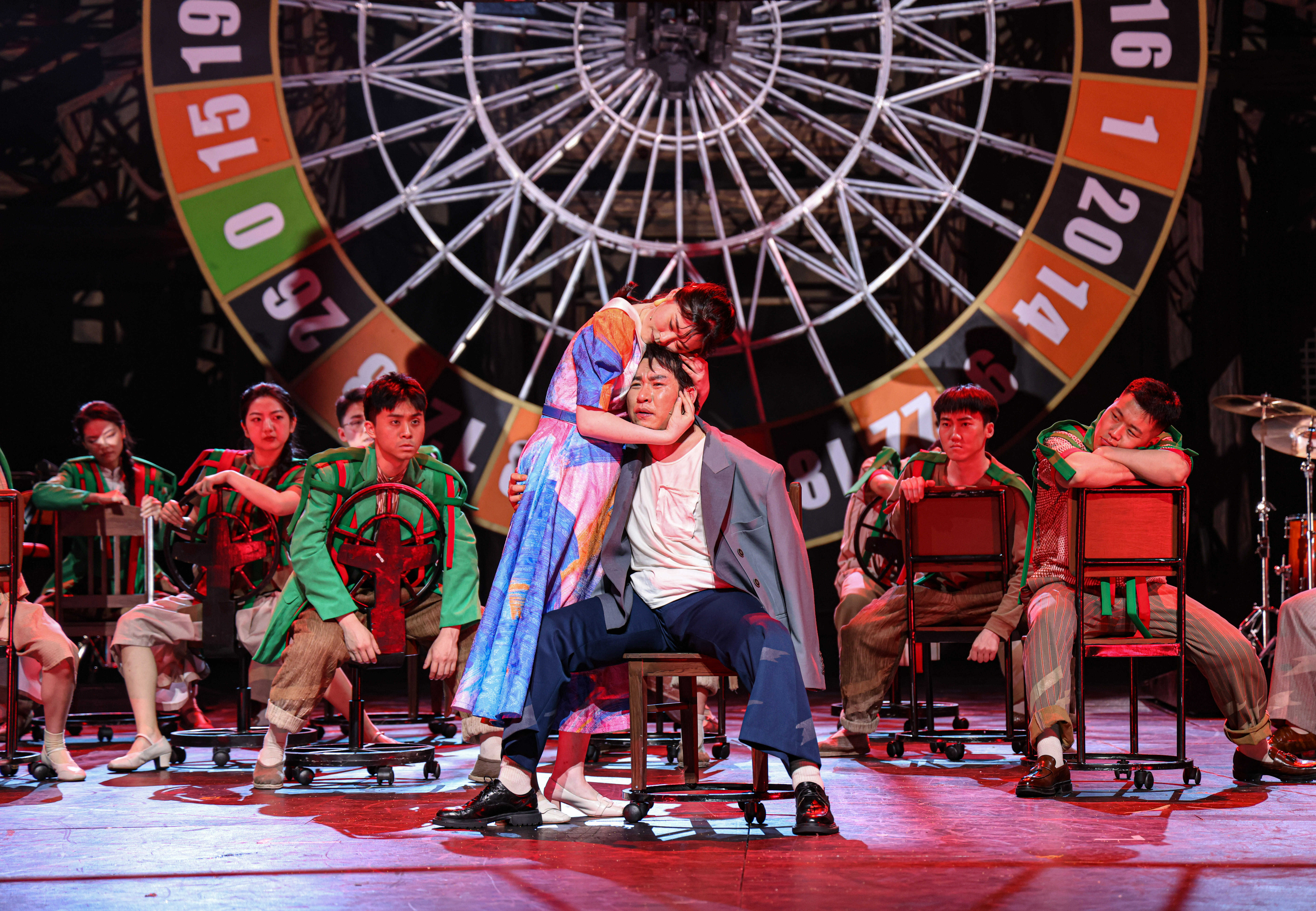 在舞台呈现方面,《生命册》的舞台简约却充满力量:3个木制大框架与两个正方体铁笼构成场景主体,创造了现实又超脱的场景空间,将人物命运的沉浮与时代变迁凝练其中,不仅聚焦个体的生命历程,更映射出一个时代的精神图谱。