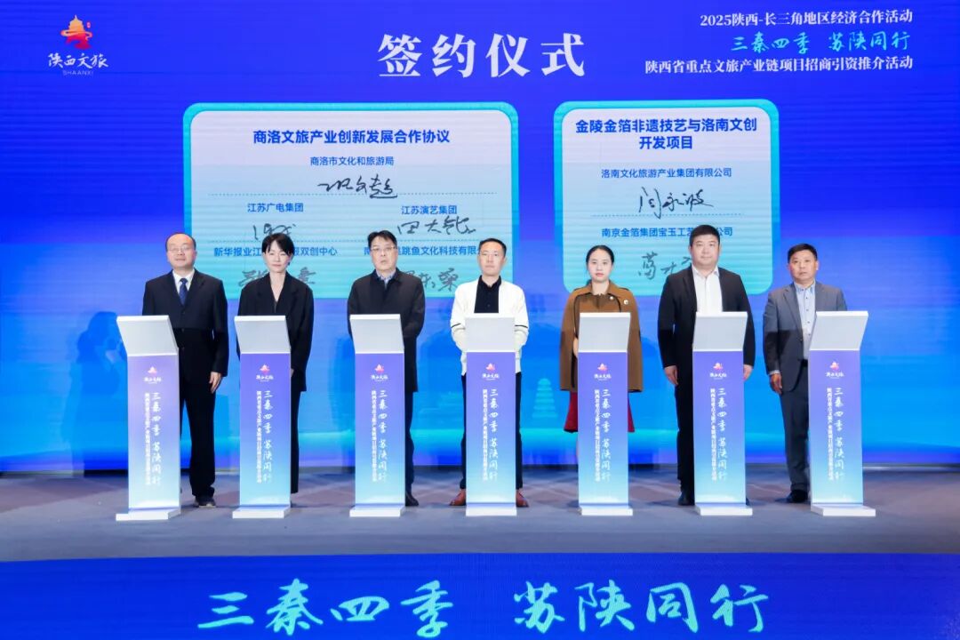 活动期间,宝鸡、渭南、榆林、商洛4市和陕旅集团、西旅集团两家链主企业向受邀参加推介活动的江苏广电集团、江苏演艺集团、无锡文旅集团、网易、同程等80余家长三角地区客商进行了招商政策发布和重点招商项目推介。陕西长恨歌演艺公司现场进行了精彩的演出展示推介。经过前期预约撮合,活动现场签约12个重点项目,金额6.26亿元。
