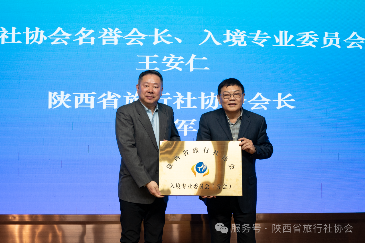 在全体与会者的共同见证下,陕西省旅行社协会名誉会长、入境专业委员会主任委员王安仁与协会会长张军共同为“陕西省旅行社协会入境专业委员会”揭牌。随后,张军会长向主任委员王安仁、秘书长朱溶非颁发了聘书。这一时刻,标志着陕西入境旅游一个全新的专业化协作平台正式启动运行。